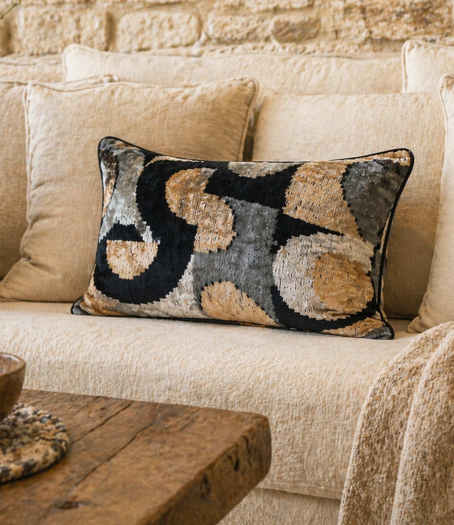 IKAT Cushion — Black Onyx Curve